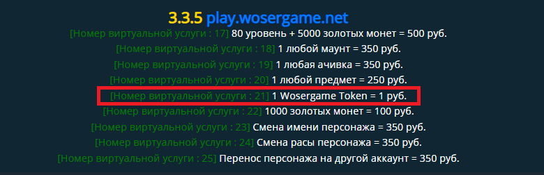Wosergame Token (WT) - это валюта, обмениваемая на предметы